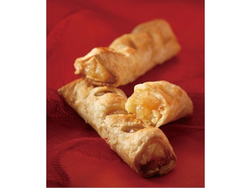 青森県産のリンゴ(ふじ)を大きめにカットし、スポンジ生地と一緒にパイで包み焼き上げました。スティック状のアップルパイです。