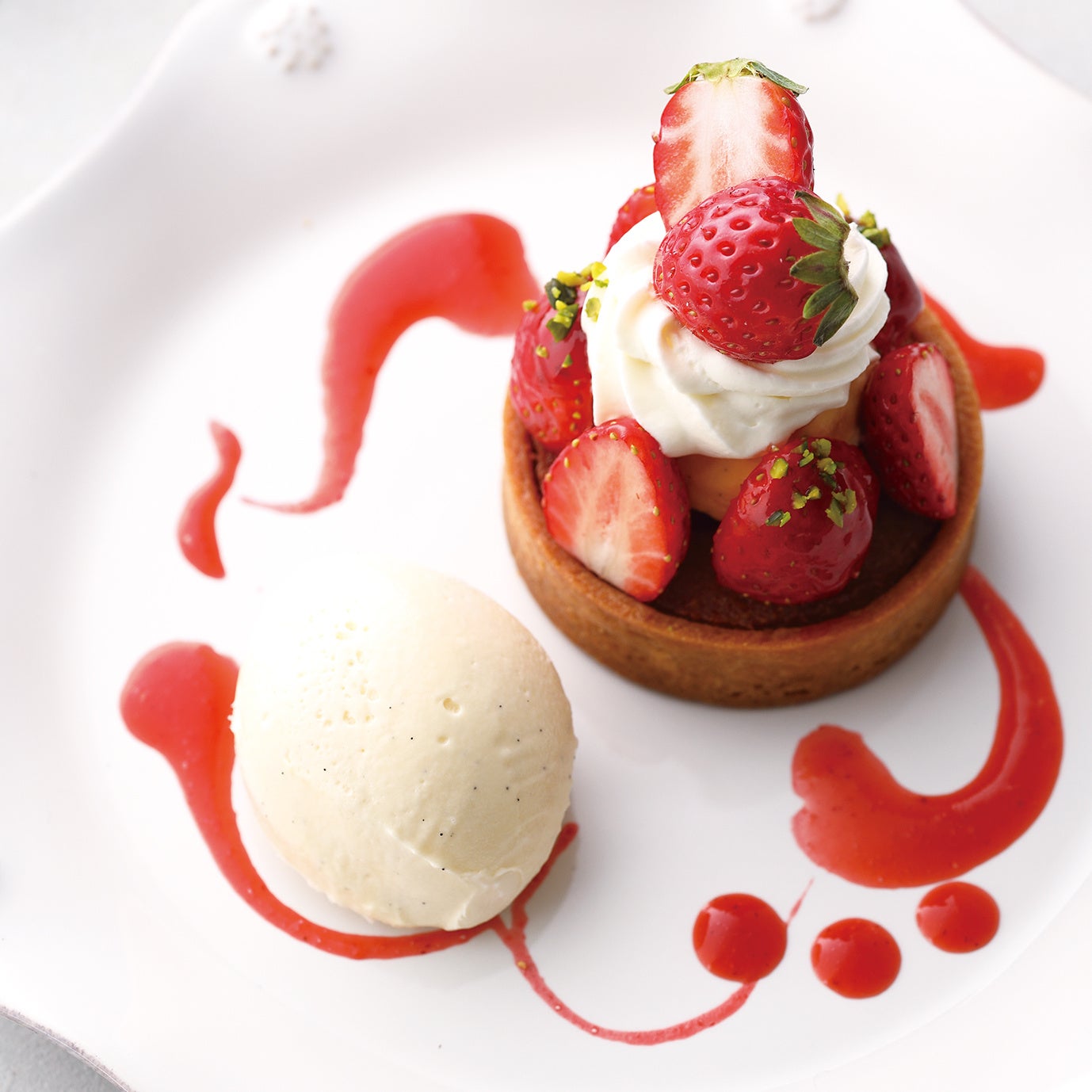 香ばしく焼きあげたタルトに、ディプロマットクリーム、フランボワーズジュレ、フレッシュ苺をのせたシンプルなタルト。苺の美味しさを存分に味わってください。