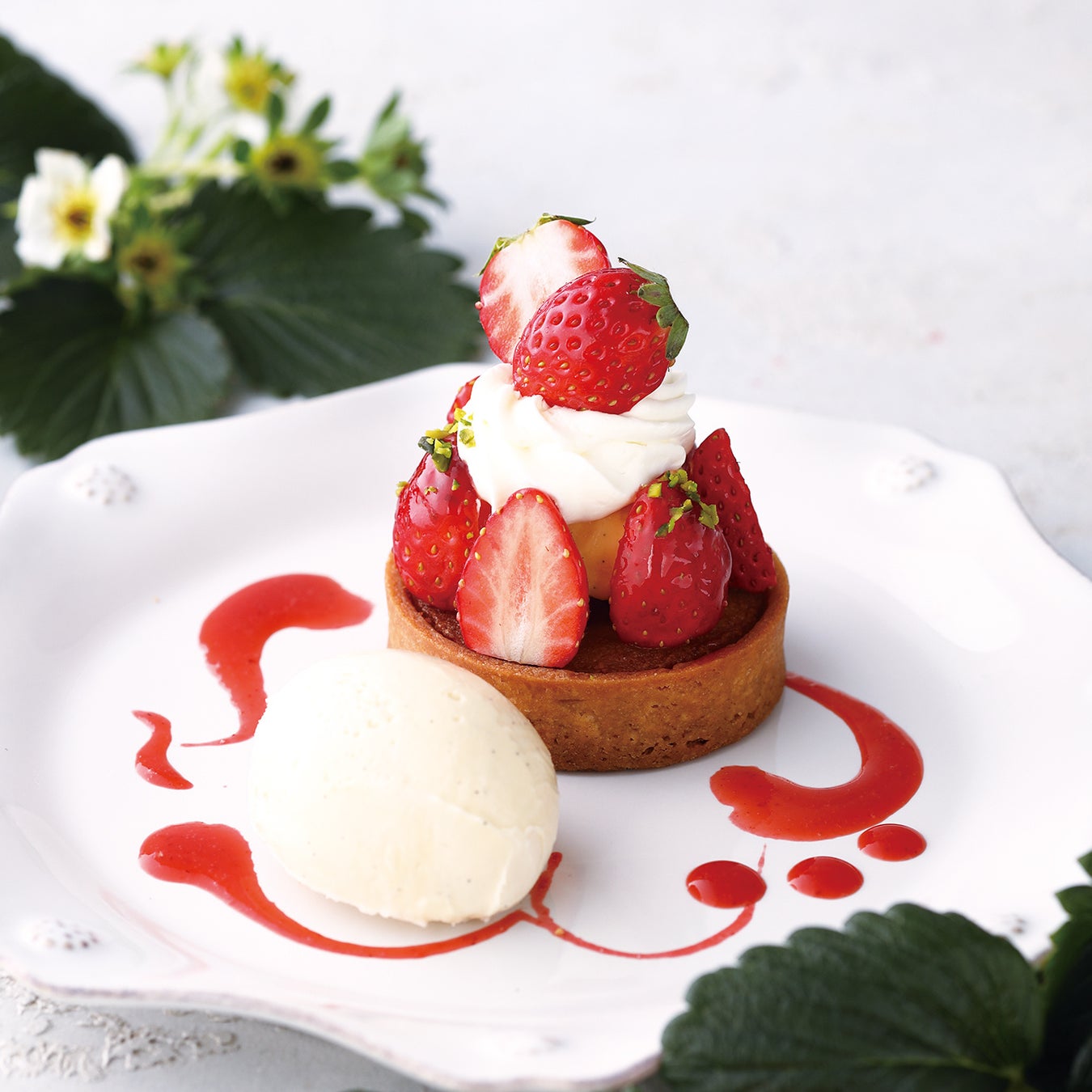 そのほか、桜あんのクリームを絞って仕上げた「苺とさくらの春色モンブラン」、香ばしく焼き上げたタルトとディプロマットクリームに苺をあわせた「苺のタルト バニラアイス添え」が、フェアの前半と後半にリレー式で登場します。