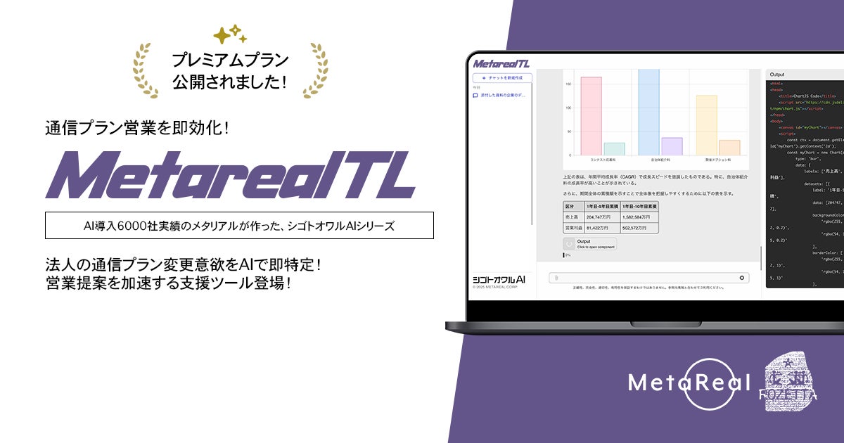 法人の通信プラン見直しニーズ予測AIエージェント「Metareal テレコムインサイト(Metareal TL)」プレミアムプラン11/21提供開始