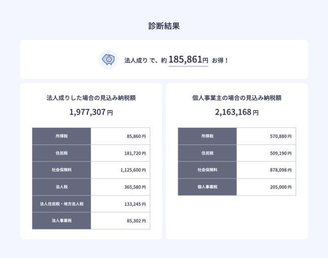『マネーフォワード クラウド会社設立』、「法人成り税額診断」を提供開始