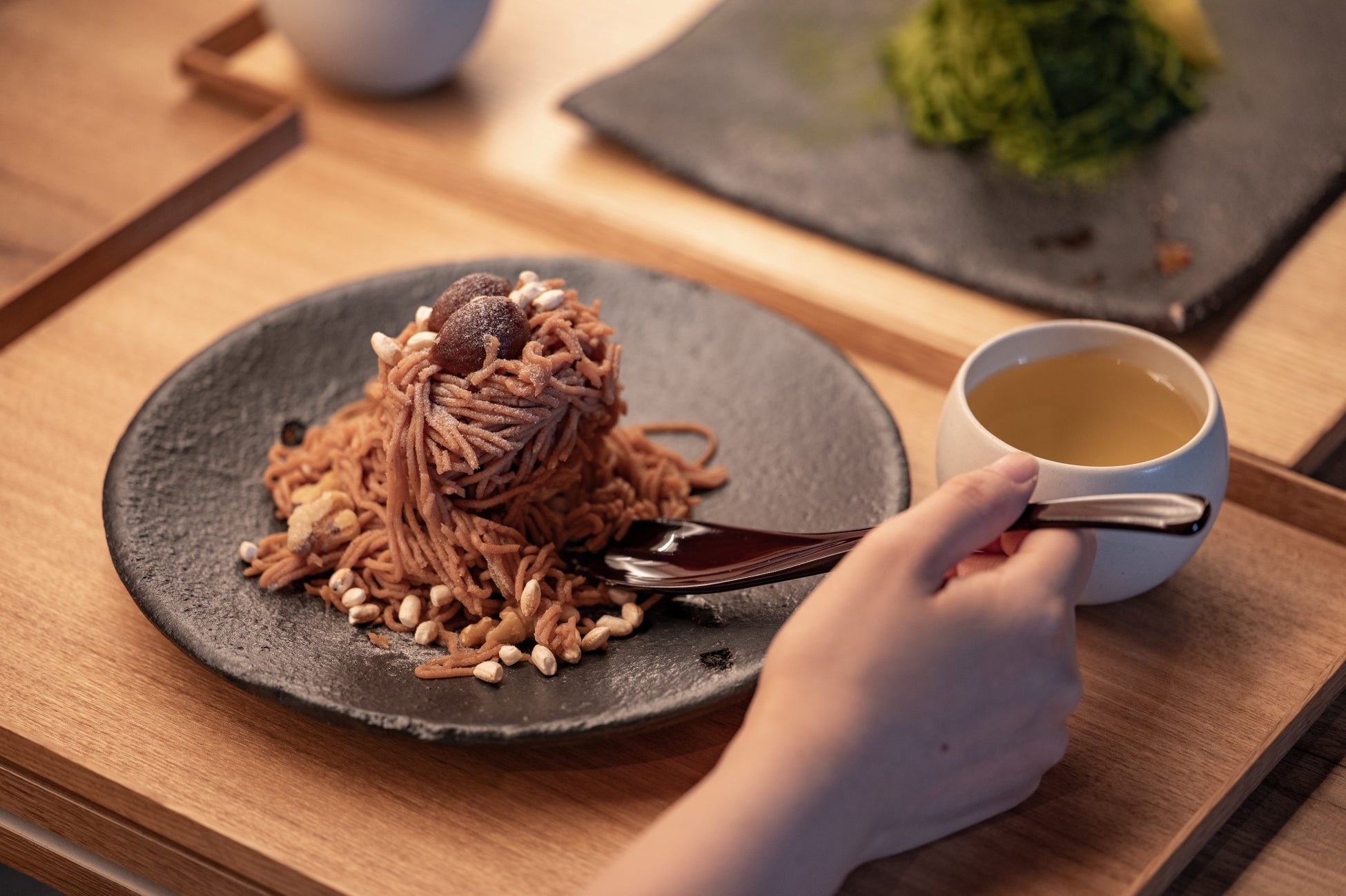 チェックイン後に、お客様ご自身で仕上げる岐阜県産食材を使用したモンブランをご用意。定番の栗、揖斐抹茶、岐阜県産ヨーグルトの3種よりお選びいただけます。