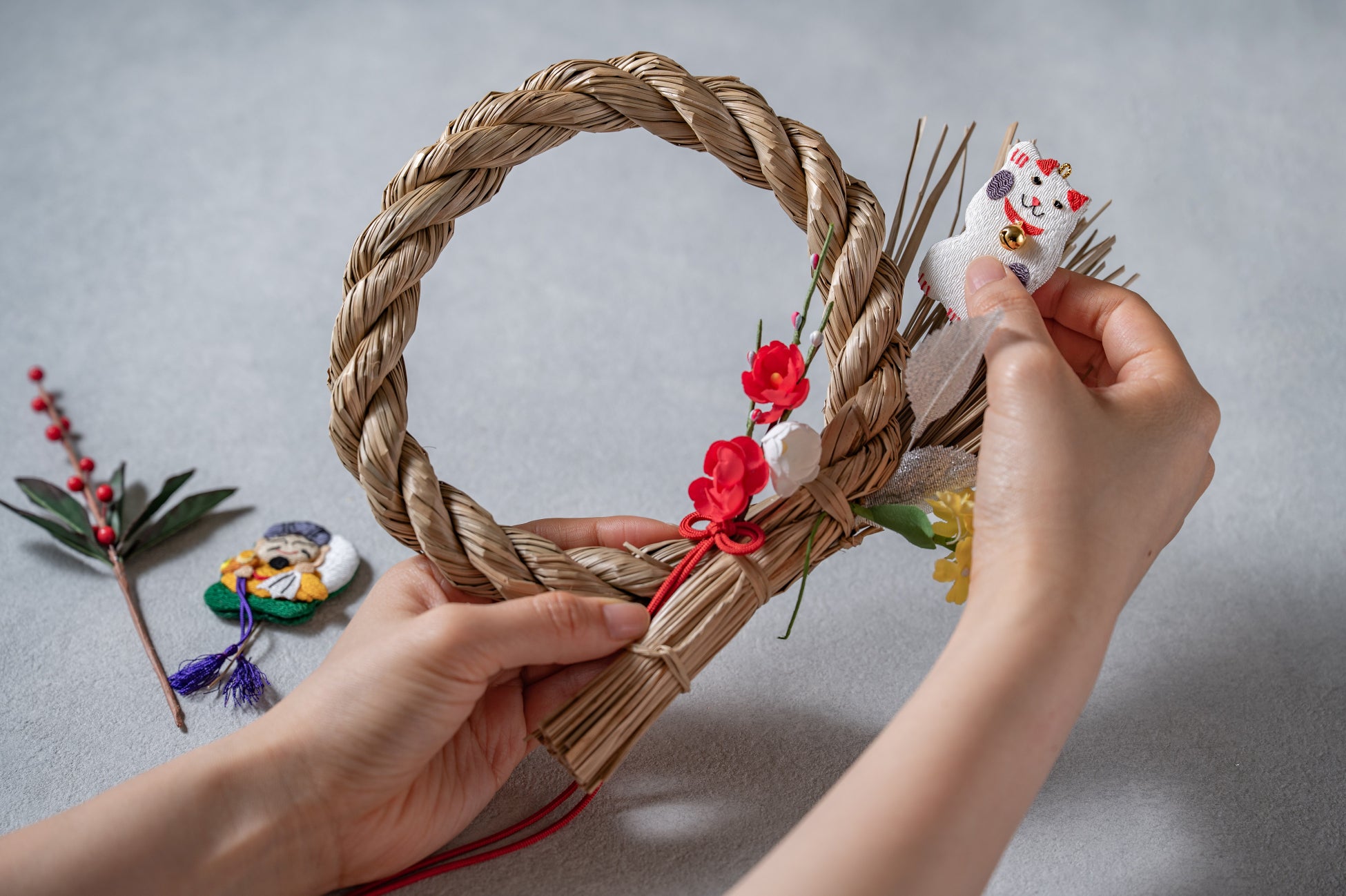 日本では古くから生活の中で用いられてきた藁細工。お米収穫後の稲藁は農家の副業として営まれていました。クリスマスやお正月など冬のイベントに向けて装飾をし、オリジナルのリースを作成いただけます。
