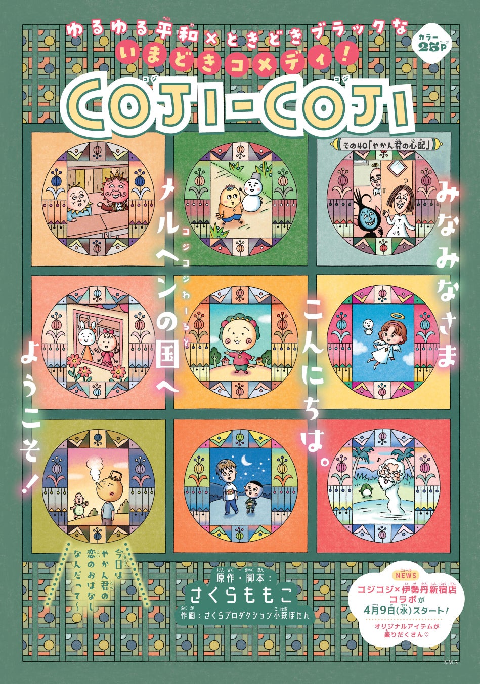 不定期連載『COJI-COJI』(原作・脚本:さくらももこ/作画:さくらプロダクション 小萩ぼたん)の新作ストーリー『やかん君の心配』をカラー扉付き25Pで掲載! ゆるゆる×ちょいブラックなナンセンスコメディの最新作。
