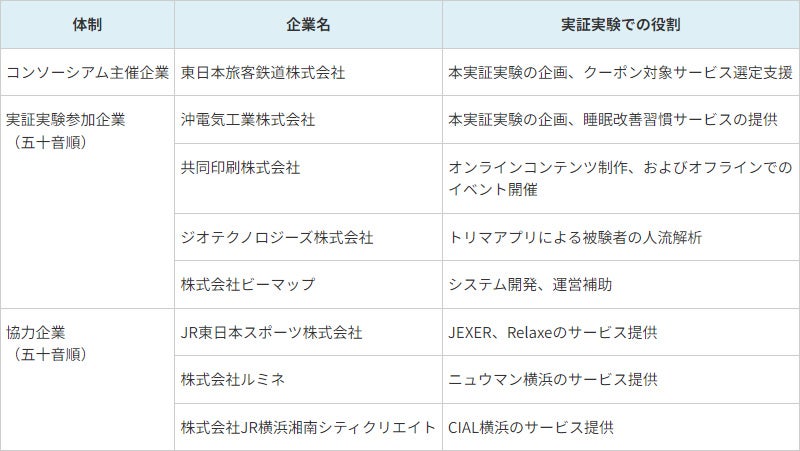 東日本旅客鉄道株式会社(本社:東京都渋谷区、代表取締役社長:喜㔟 陽一、以下JR東日本)、沖電気工業株式会社(本社:東京都港区、代表取締役社長:森 孝廣、以下OKI)、共同印刷株式会社(本社:東京都文京区、代表取締役社長:藤森 康彰)、ジオテクノロジーズ株式会社(本社:東京都文京区、代表取締役社長:八剱 洋一郎)、株式会社ビーマップ(本社:東京都千代田区、代表取締役社長:杉野 文則)は、JR 東日本主催の「WaaS 共創コンソーシアム(注1)」による取り組みの一環として、「Wellbit™ Sleep(注2)」(ウェルビット・スリープ)を使った健康意識・行動の変化を検証する実証実験をJR横浜駅で実施します。