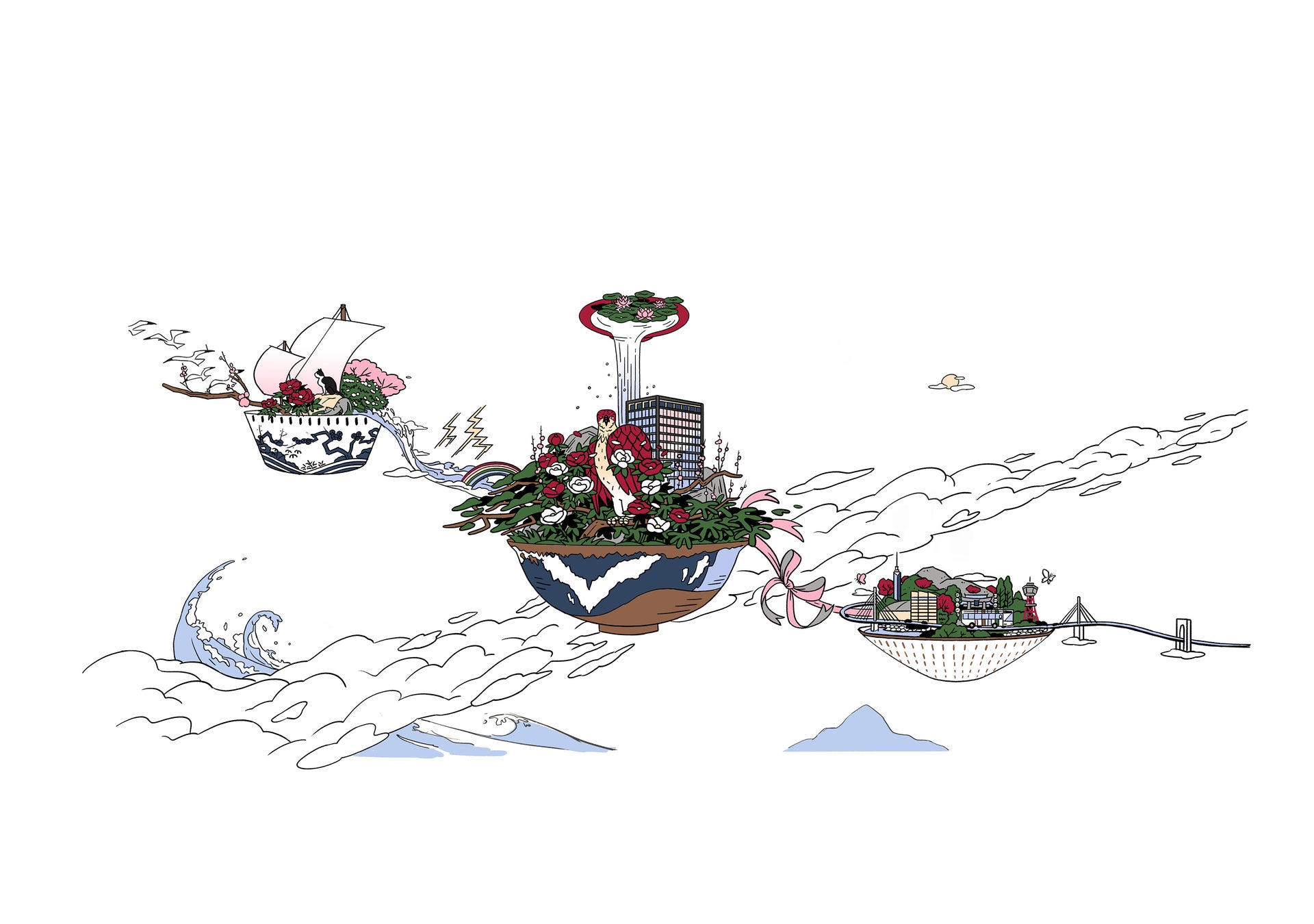 ※スカイロビーに展開の大小島 真木 氏とクニト 氏の作品は、東京・青山の複合文化施設を拠点として活動するアートセンター「SPIRAL」との協業。「SPIRAL」はワンビル3Fにショップ・カフェ・ギャラリーを出店