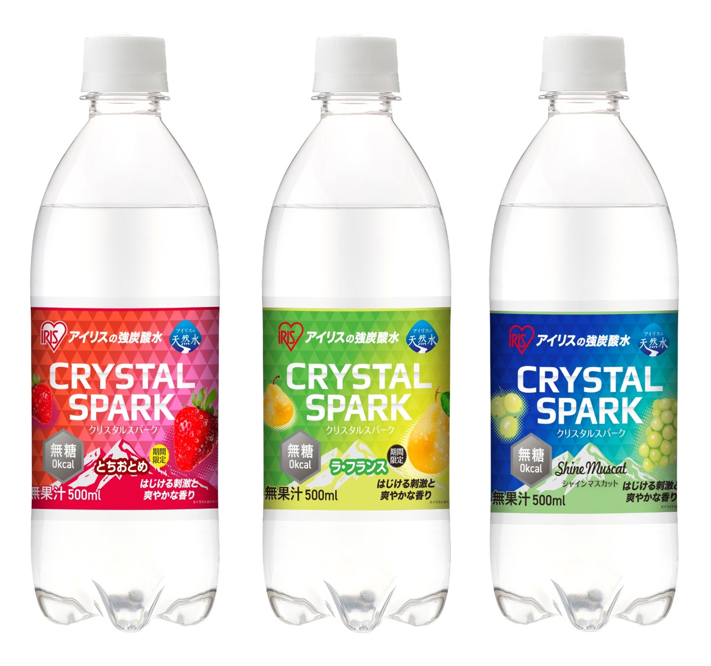 アイリスグループのアイリスフーズ株式会社(本社:宮城県仙台市、取締役社長:北尾 利徳)は、炭酸水ブランド「CRYSTAL SPARK(クリスタルスパーク)」シリーズの「CRYSTAL SPARK とちおとめ」、「CRYSTAL SPARK ラ・フランス」、「CRYSTAL SPARK シャインマスカット」を、2024年9月24日より通販サイトやスーパーマーケット、ドラッグストアを中心に発売(※1)します。