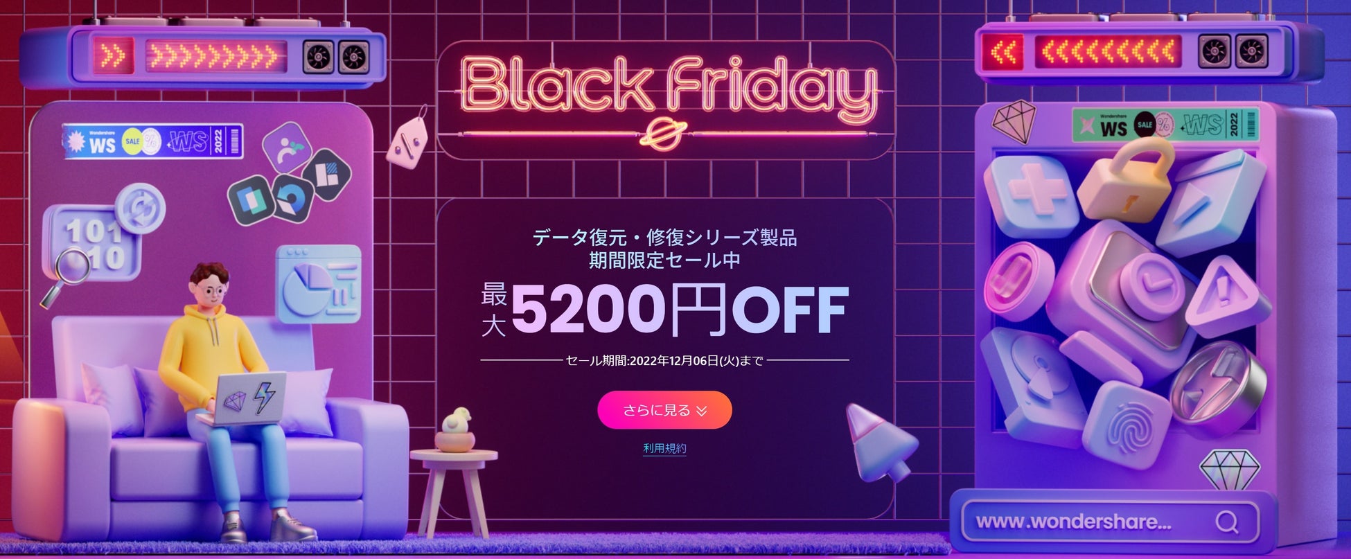 『お家で自分で、データ復元!』復元ソフトが【超特価】で購入できるブラックフライデーセール実施中|Wondershare Recoverit