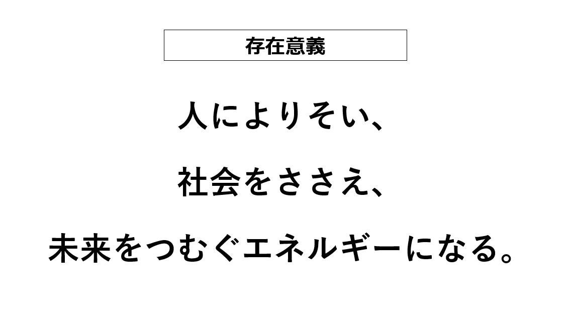 新しいグループ経営理念は、お客さまや社会にとって“自分たちは何者か・何のために存在しているのか”を示した「存在意義」と、東京ガスグループ従業員が“何を大切にして行動するのか”を示した「価値観」で構成しています。