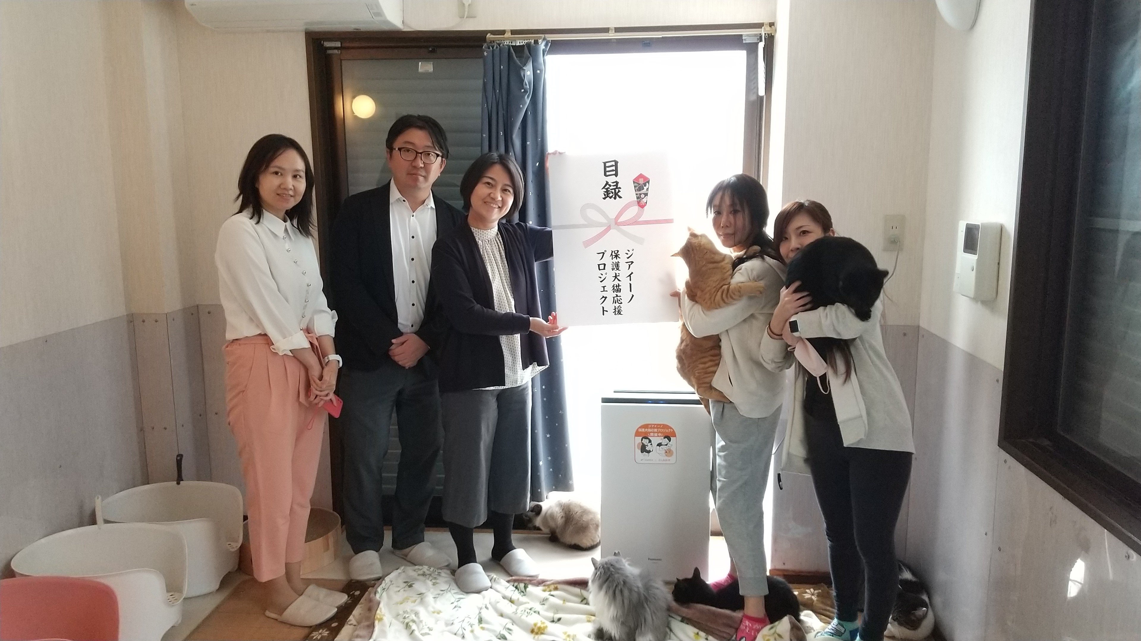 昨年同様、今年も多くの方に本プロジェクトを応援していただいたことで、目標金額200万円を達成することができ、ペットメディア「sippo」を通じて、参加する全国の動物保護団体に寄付を行いました。また、大阪府のNPO法人「アニマルレスキューたんぽぽ」様、一般社団法人「Reef Knot」様、愛知県の一般社団法人「SORA小さな命を救う会」様において目録贈呈式を行い、「ジアイーノ」についての意見交換も行いました。