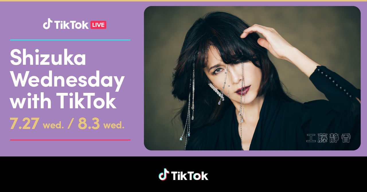 TikTok LIVEでは、「Shizuka Wednesday with TikTok」 と題して、工藤静香の35年に及ぶ活躍を2週に渡り振り返ります。第一週の7月27日は、デビュー35年を迎えてもなお輝き続ける工藤静香のカリスマ性や素の魅力を深堀ります。第二週の8月3日は豪華ゲストを迎え、多くの人を魅了するアーティストとしての工藤静香をお届けします。第二週のTikTok LIVEは新宿のユニカビジョンでも同時中継いたします。