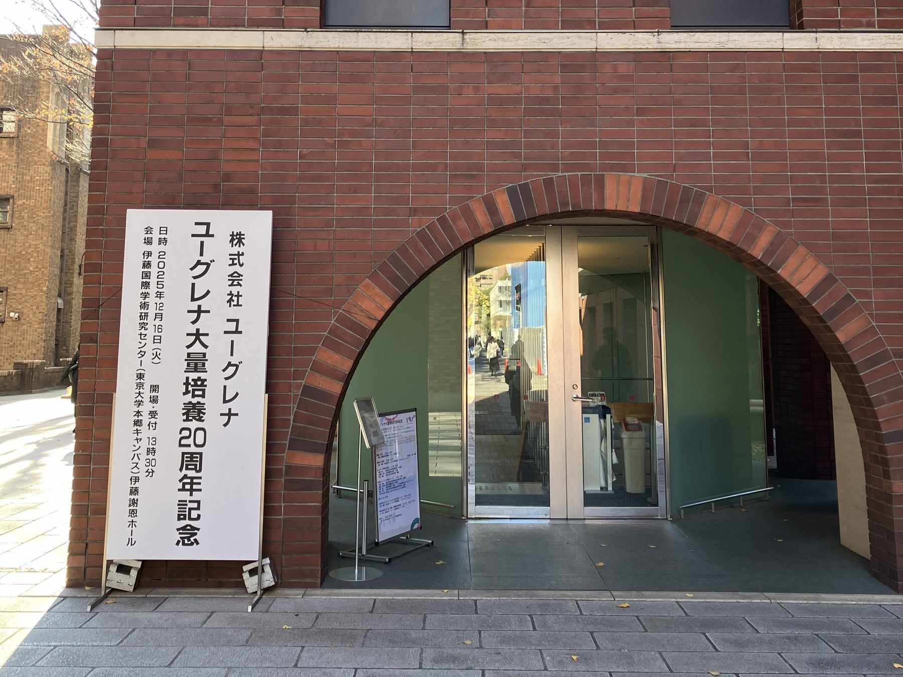 株式会社ユーグレナは、微細藻類ユーグレナの大量培養成功から20周年を迎えたことを記念し、2025年12月16日に東京大学・伊藤謝恩ホールにて記念イベントを開催いたしました。