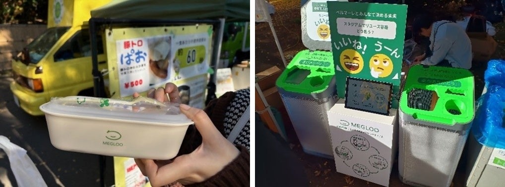 Jリーグ試合会場(レモンガススタジアム平塚)スタジアム内外の35店舗でリユース容器を使用したメニューを販売し、容器を回収する実証実験を行いました。 併せて「投票型回収ボックス」にて回収。リユース容器の活用の賛否について投票を実施しました。 実証日:2024年11月30日(土) 実証結果: ・リユース容器による提供食数:5,698食 ・リユース容器の活用により削減された廃棄物の量:106kg ・廃棄物削減により削減されたCO2排出量:495kg ・リユース容器の返却率:91% リユース容器の活用による廃棄物削減及びCO2排出量削減の効果が確認できました。また投票型回収ボックスにより、利用者の9割以上がリユース容器の活用に賛成であることが分かったとともに、リユース容器の返却率は90%を超えました。 実証後、使用済みリユース容器を洗浄施設に発送するための分別作業に時間がかかったため、次回以降は回収ボックス自体を容器種類ごとに分けることで改善を図ります。 ※当日の様子(動画) https://www.youtube.com/watch?v=nRZKFJl3I-Q |