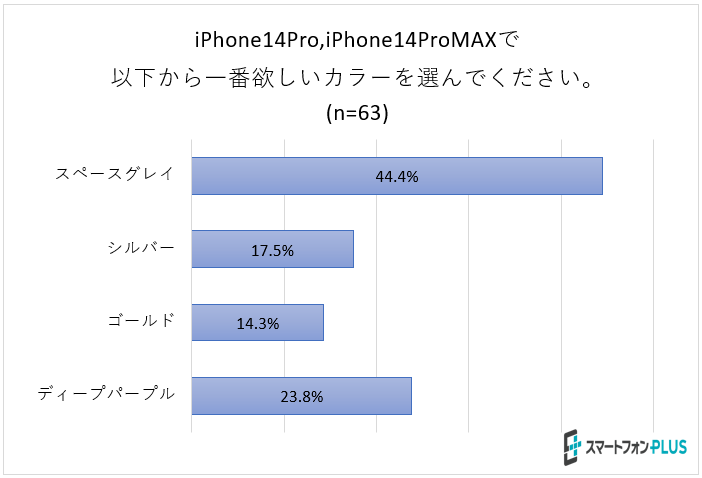 2番目は「iPhone 14 Pro」で約26.3%、3番目は「iPhone 14 Pro Max」で約14.1%、4番目は「iPhone 14 Plus」で12.8%、という結果になりました。