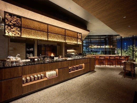 ホテル最上階の14階では、高温の炎によって食材のおいしさを最大限に引き出す薪火料理が堪能できるレストランを展開します。薪の炎を眺められるオープンキッチンを設け、ライブ感を演出。さらにトーンを落とした暖色系の内装や照明、炎の揺らぎや熱の広がりを連想させる鉄のアートにより、薪火料理の世界観を感じられる空間に仕立てました。提供するのは和洋中ジャンルに捉われない多彩なメニュー。朝食については、ハーフビュッフェに加えて、数種のメインメニューからお好みの料理をお選びいただける形式となっており、連泊されるお客様に、飽きのこないバリエーション豊かな料理をご提供します。