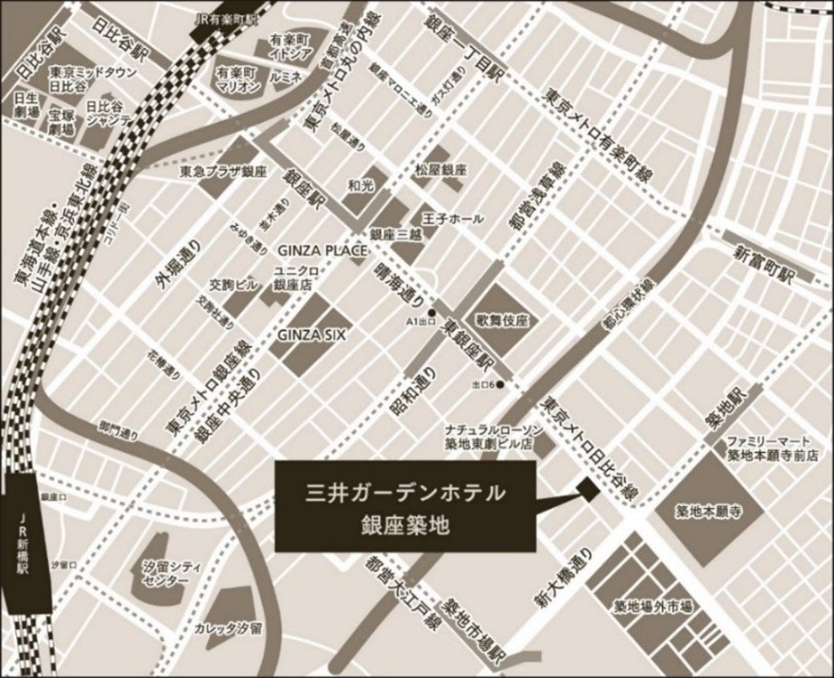 東京メトロ日比谷線・都営浅草線「東銀座」駅徒歩3分、 東京メトロ日比谷線「築地」駅から徒歩4分 |