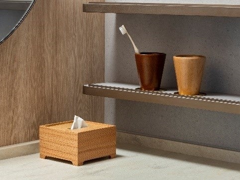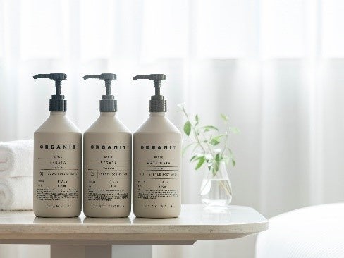 客室のデザインコンセプトは「LIFE COCOON」とし、柔らかな繭に包まれるような空間に仕立てました。優しい色と形で構成され、ストレスがなく、飽きのこない明るいデザインを採用。共用部のグリーンとつながりを感じさせる木調の家具、伝統工芸品の有松絞「suzusan」を纏い柔らかな光を放つランプシェード、フラワーアートなどにより、安らぎのある時間を提供します。フラワーアートは、2・3階を「始まり・芽吹き」、4階は「成長・楽しみ」など、繋がりのあるテーマをフロアごとに設定し、訪れる度に異なるアート作品を楽しむことができます。そのほか、木製の客室備品やヨーロッパでヴィーガン認証を取得しているインバスアメニティ、バイオマス素材を使用したアメニティなどを採用することで、環境に配慮した取り組みに力を入れています。また、従来品よりも柔らかく、肌触りの良い生地を採用し、デザイン性にこだわった新仕様のナイトウェアを導入しました。