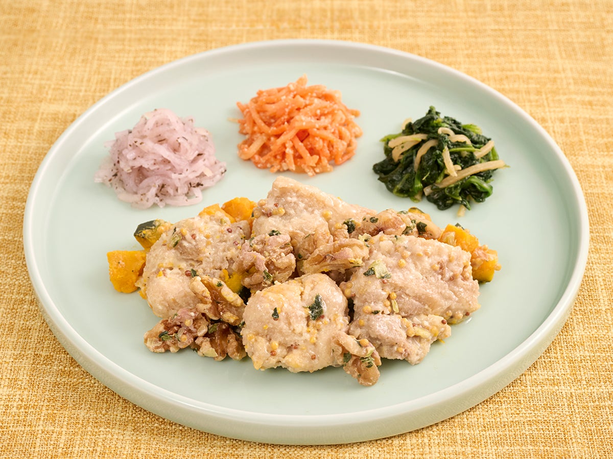 今回発売する「やみつき!ハニーマスタードチキン」は、「ガッツリ濃厚な味を楽しみたい!」という方にぴったりの一品です。特製ハニーマスタードに、マヨネーズのコクを加えることで、爽やかな酸味の中にもコクのある濃厚な旨みを感じられる味わいに仕上げました。さらに、大きめのクルミを加えることで、カリッとした食感がアクセントとなり、最後まで飽きずに楽しめます。ボリューム満点ながらも糖質を抑え、たんぱく質24.3gを実現。「しっかり食べたいけれど、健康も気になる」という方にぴったりの、バランスの取れた一皿です。