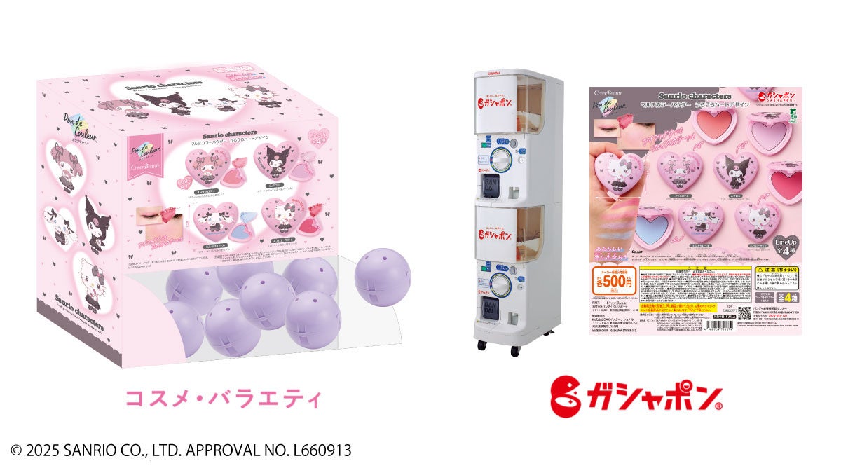 株式会社バンダイ ライフスタイル事業部では、バンダイが運営する化粧品ブランドCreerBeaute(クレアボーテ)」より、クローズドパッケージに入った大人向け本格コスメシリーズ『Pon de Couleur(ポンデクルール)』の新商品「ポンデクルール サンリオキャラクターズ うるうるハートデザイン マルチカラーパウダー」全4種を、2025年6月30日(月)より全国のコンビニエンスストアやヴィレッジヴァンガード、バラエティ・キャラクター雑貨専門店等、ガシャポン自販機にて順次販売開始いたします。