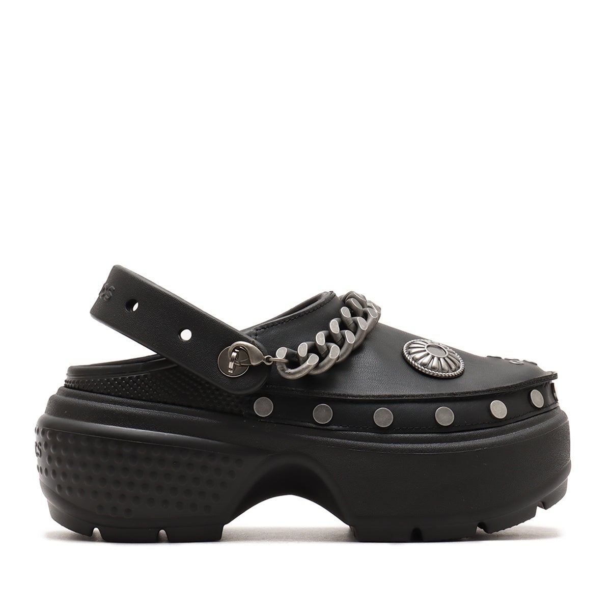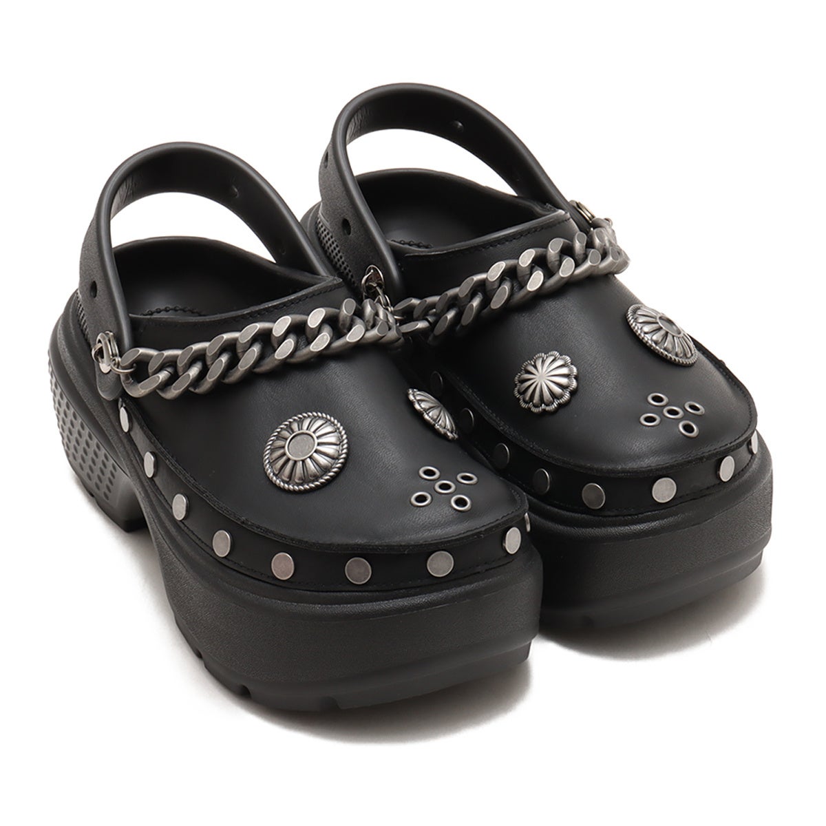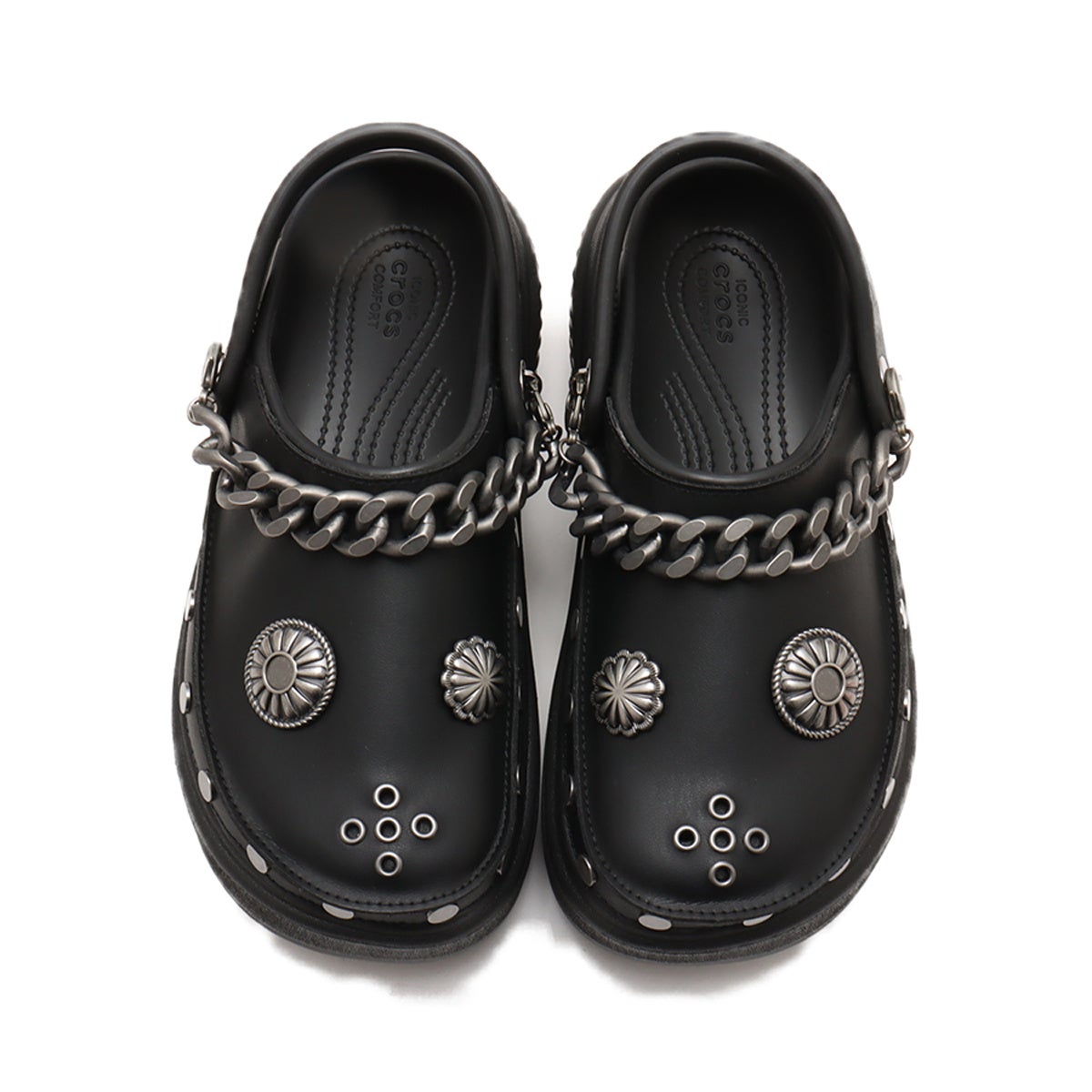 atmos pinkより、crocsの定番モデル”Stomp Clog(ストンプ クロッグ)”をスタイリッシュにアップデートした別注シューズ「crocs Stomp Embellished Clog」が登場いたします。