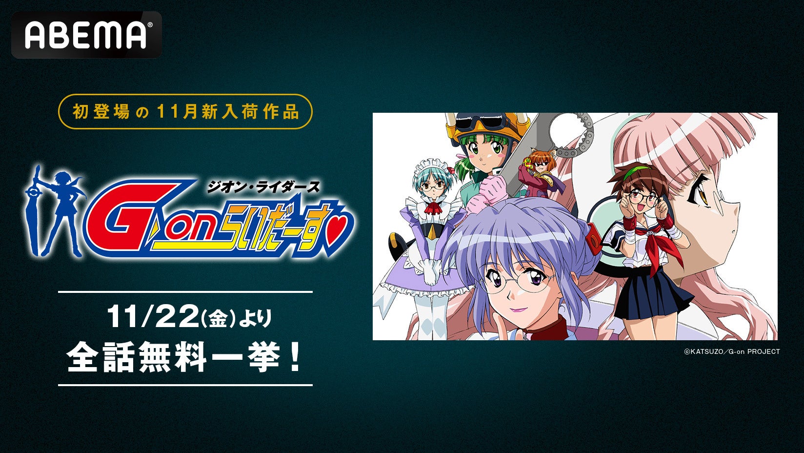 このたび、11月の新入荷アニメ『G-onらいだーす』の「ABEMA」初の全話無料一挙放送が決定いたしました。「深夜アニメチャンネル」にて、2024年11月22日(金)夜8時と、23日(土)朝8時より全14話を無料一挙放送。また放送後1週間、全話無料でお楽しみいただけます。