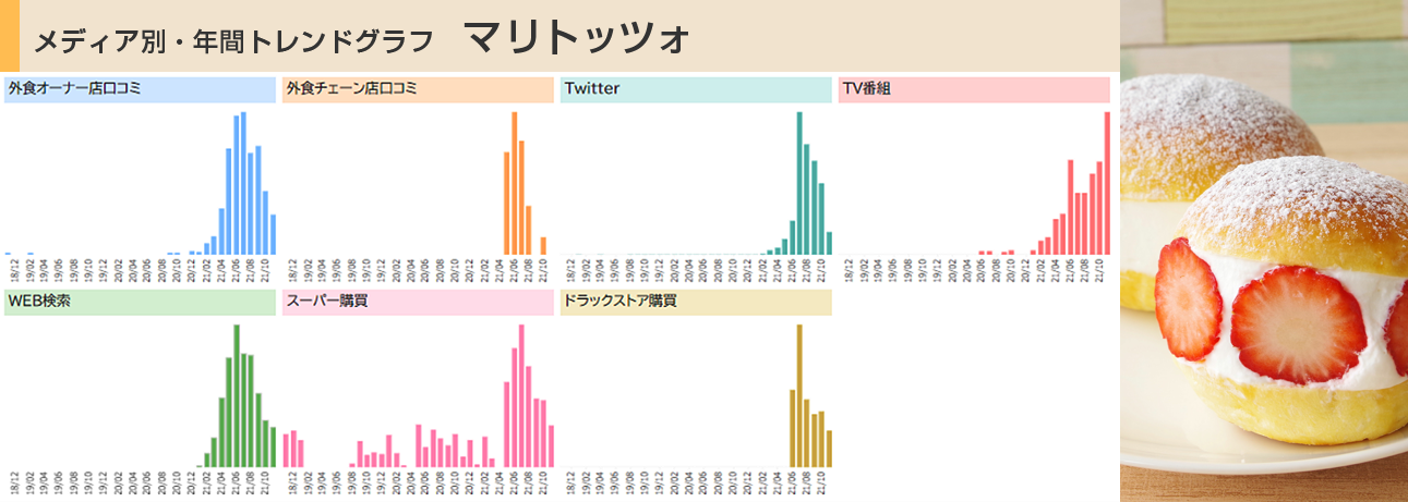 CCCマーケティング株式会社(本社:東京都渋谷区、代表取締役社長:北村和彦、以下「CCCマーケティング」)は、食に関わるさまざまな企業向けマーケティング支援サービス「Market Watch(以下、MKW) トレンド版※1」において、外食口コミ、SNS、テレビ、実購買履歴のデータを複合分析する「MKWクロスメディア・トレンド パック※2」をもとに集計した、「クロスメディア・トレンド2021年間ランキング」をお知らせいたします。