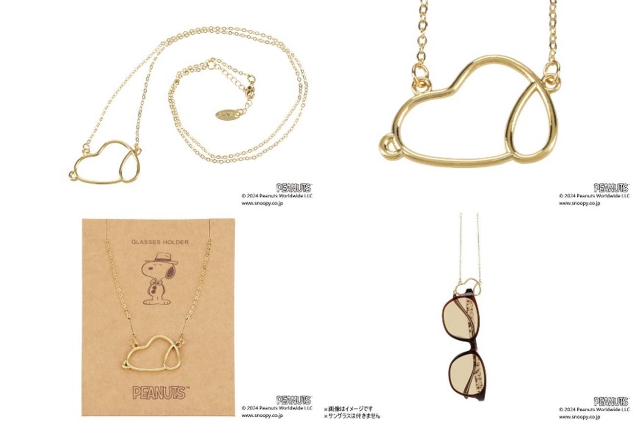 スヌーピーの横顔部分にメガネがかけられるグラスホルダー。ネックレスのように身に着けることができる、シンプルながらも高級感のあるデザインです。