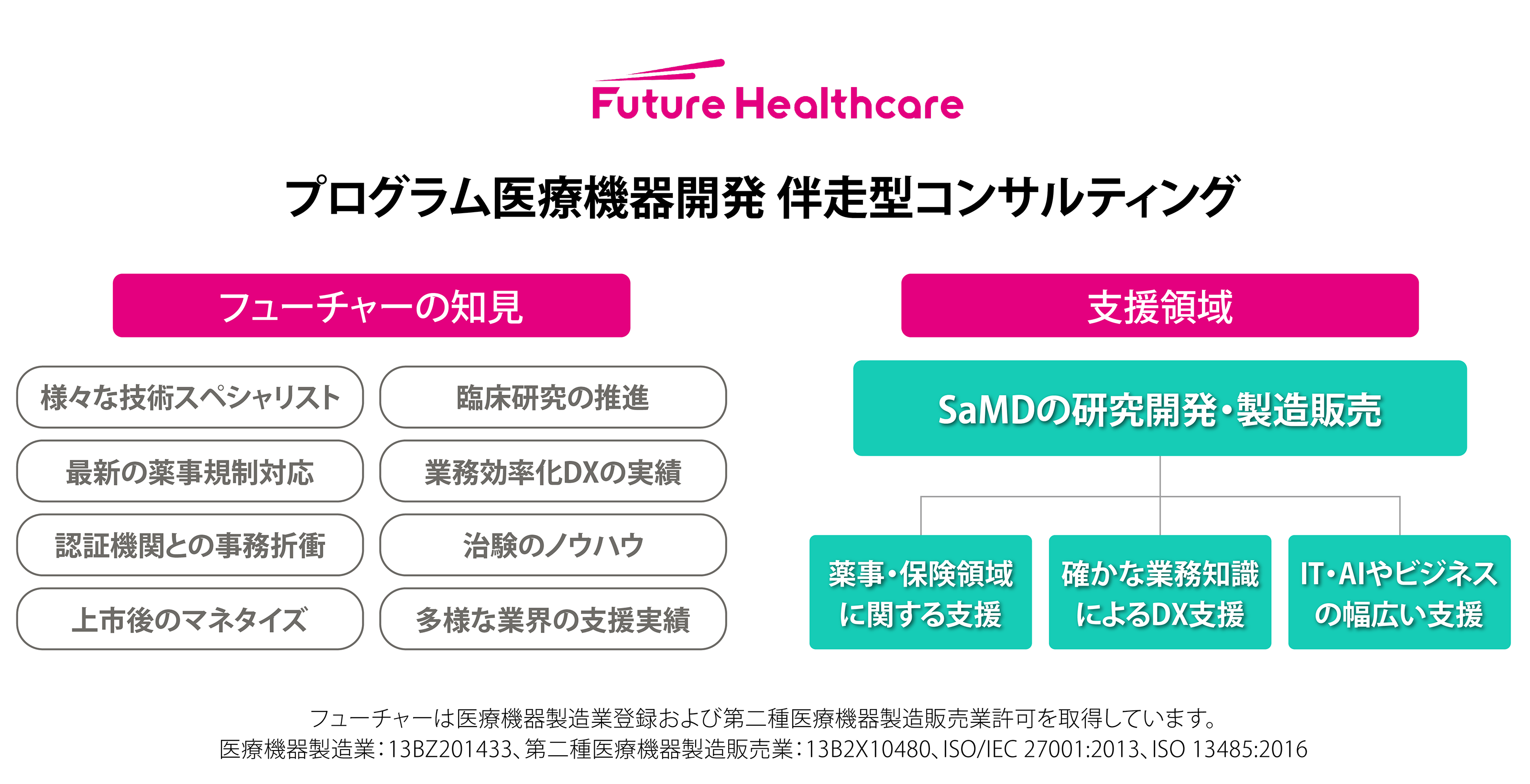 フューチャー、プログラム医療機器開発の伴走型コンサルティングを開始