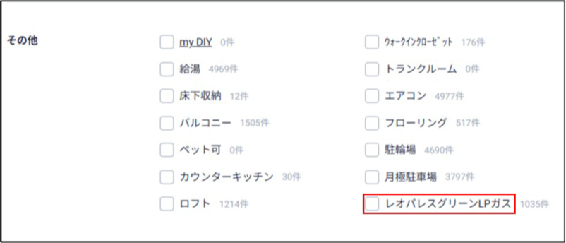 1.検索条件に「レオパレスグリーンLPガス」を追加