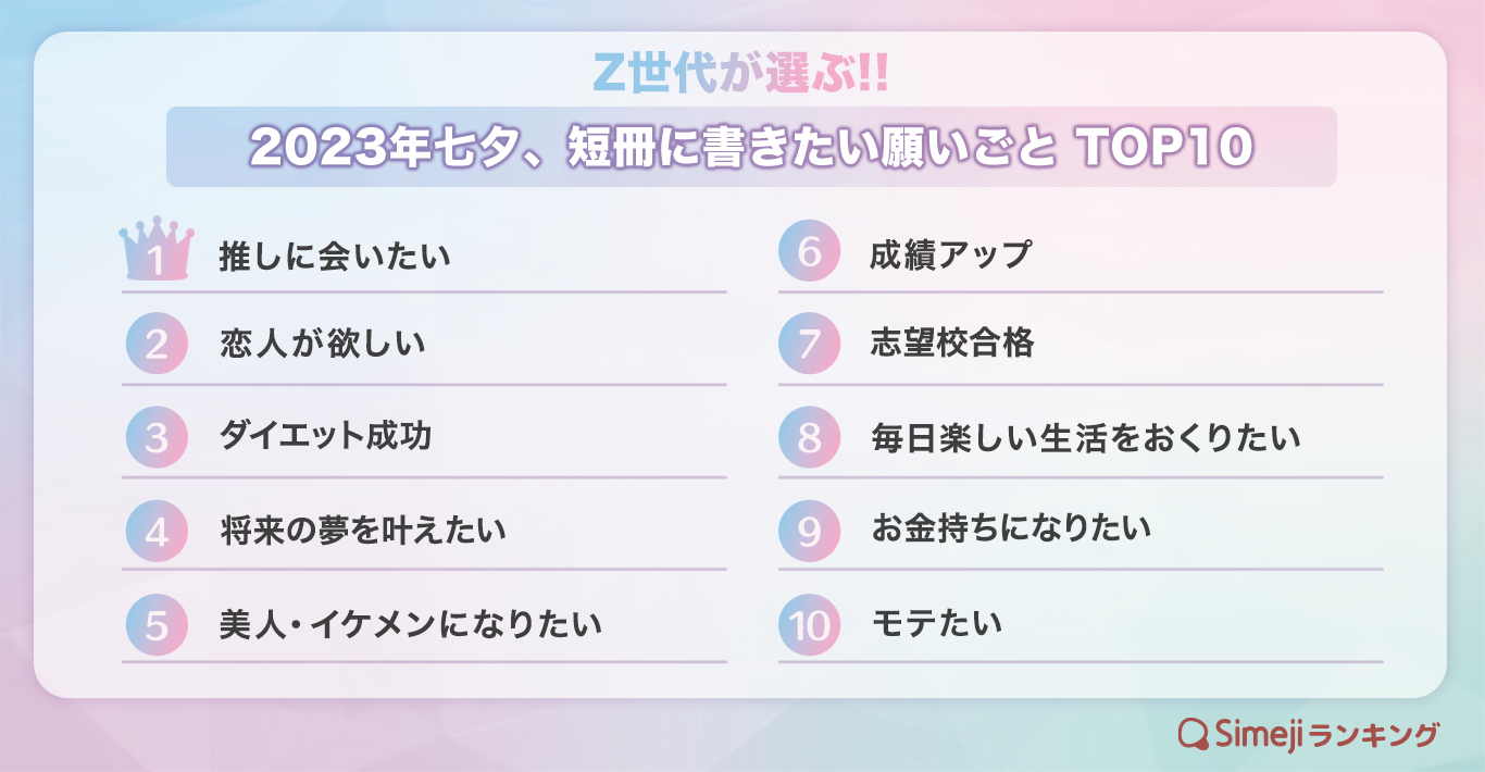 【Simejiランキング】Z世代が選ぶ!!「2023年七夕、短冊に書きたい願いごとTOP10」