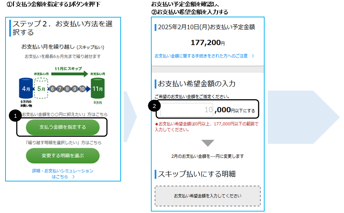 また、本機能の提供に合わせ、「ショッピングスキップ払い」への変更手続き中に、手数料の確認ができるようになりました。