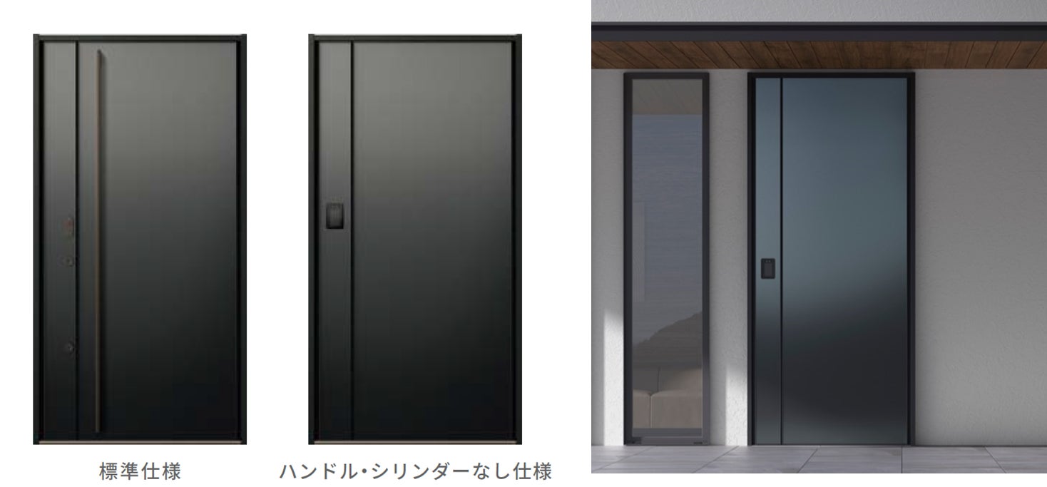 また、顔認証と自動開閉を組み合わせることによりハンドルを操作する必要がなくなったため、これまで実現が難しかったハンドルやシリンダーが一切ないデザインが可能になりました。「XE」の発売当初から掲げる「住宅との調和」を追求したミニマルを極めたデザインのドアを実現しています。