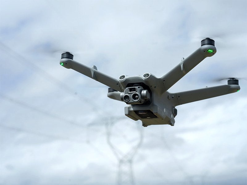 Matrice 3TD は広角カメラとハイブリッドズーム56倍カメラに加えて、高解像度のサーマルカメラを搭載し、可視光以外に赤外線(熱)画像も撮影できる、点検や巡視、鳥獣調査、夜間業務など幅広い分野に適したドローンです。