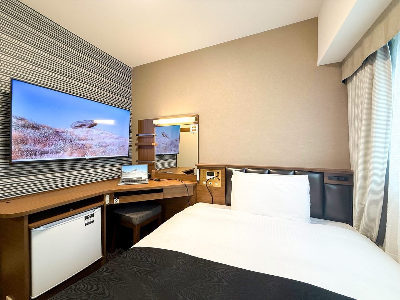 客室設備は高品質・高機能・環境対応型を理念とする「新都市型ホテル」の最新仕様としている。アパホテルは『 Even Better! APA HOTEL -さらによりよく- 』を掲げて宿泊者の利便性・居住性を追求し続けており、当ホテルにおいても、既存設備の改良や新たな客室タイプを設置することで、今まで以上に快適なホテルへとイノベーションを行った。また、増加する訪日外国人需要の受け皿となるべく、アパホテルでは訪日外国人志向の客室づくりに注力しており、ホテルの館内案内などをテレビ画面に集約表示した5言語対応の『アパデジタルインフォメーション(ADI)』やほぼ全世界のプラグに対応するユニバーサルコンセント、全496種類のピクトグラムを使用した館内サイン・案内を採用している。