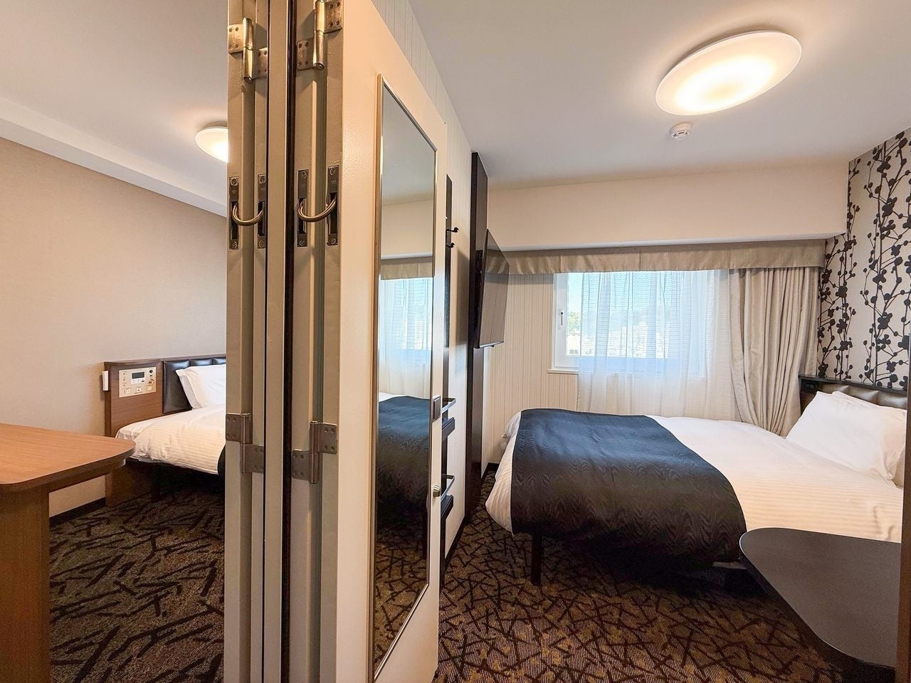 全156室(全室禁煙) ・ スタンダードルーム 86室(1,400mm幅 / 1ベッド) ・ モデレートルーム 18室(1,400mm幅 / 1ベッド) ・ S-Sコネクトツインルーム 24組48室(1,400mm幅 / 2ベッド) ・ 桜島ビュールーム 2室(1,400mm幅 / 1ベッド) ・ デラックスツインルーム 2室(1,200mm幅 / 2ベッド) |