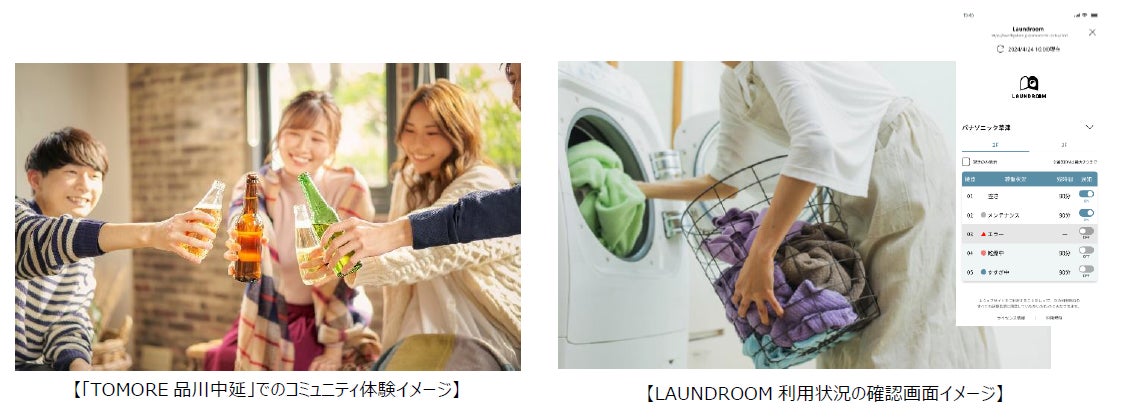 また、「快適な職住環境」や「コミュニティ体験」の創出に向け、外部パートナー企業とも複数のコラボレーションを行います。シェアランドリースペース(1F)では、高品質なパナソニック株式会社製のななめドラム式洗濯乾燥機を全15台設置。更に同社が新たに発表したランドリーサービス 「LAUNDROOM」を初導入。洗濯機の利用状況がアプリから確認でき、待ち時間のストレスなく利用いただけます。