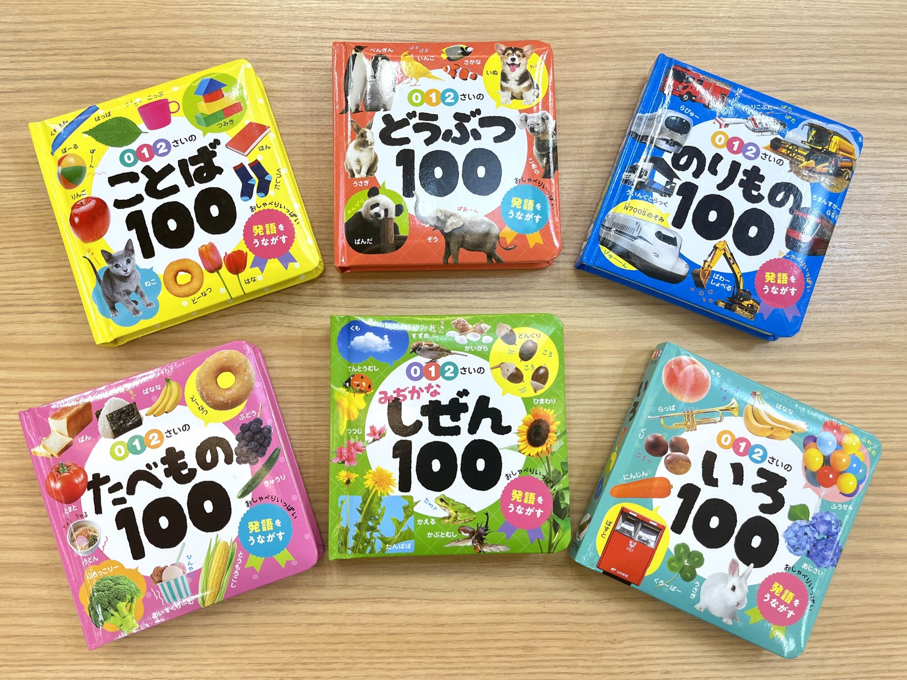 大きな写真で、最初に覚えたい100のことばを掲載。新刊『0・1・2さいの いろ100』も発売!