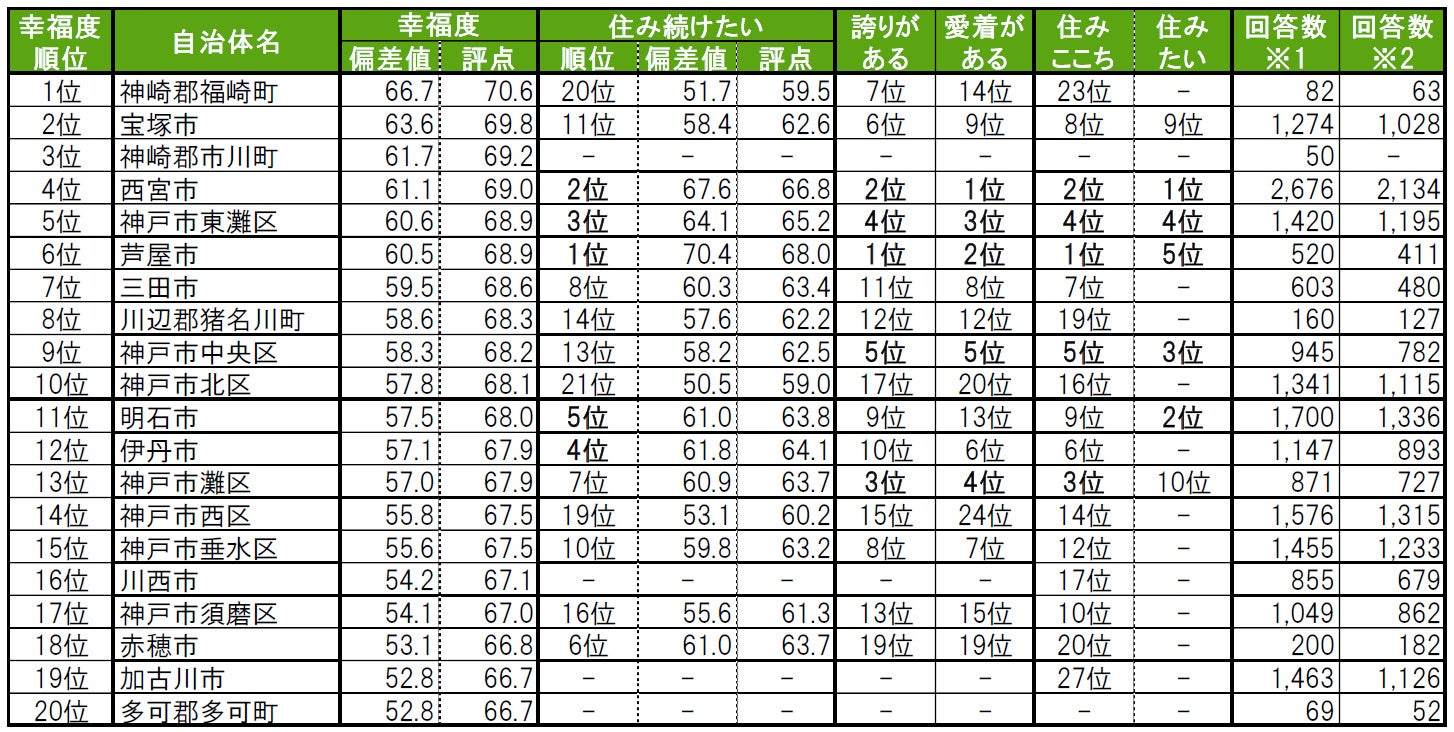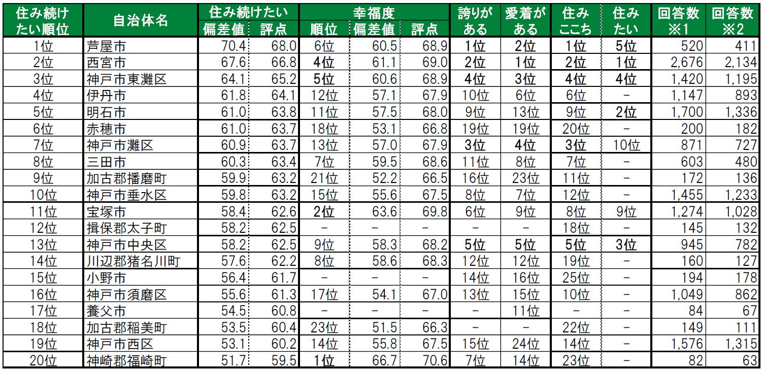 いい部屋ネット「街の幸福度 & 住み続けたい街ランキング2022<兵庫県版>」(街の住みここちランキング特別集計)発表