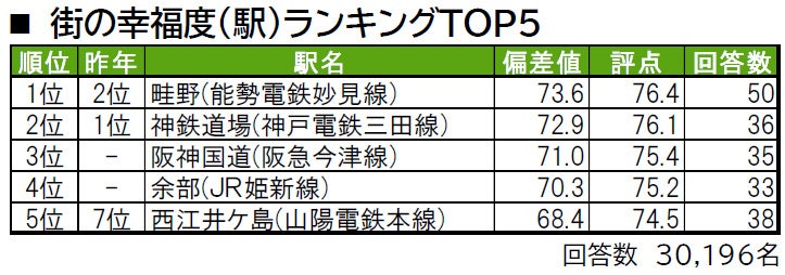 ■街の幸福度(駅)トップは、畦野(能勢電鉄妙見線)