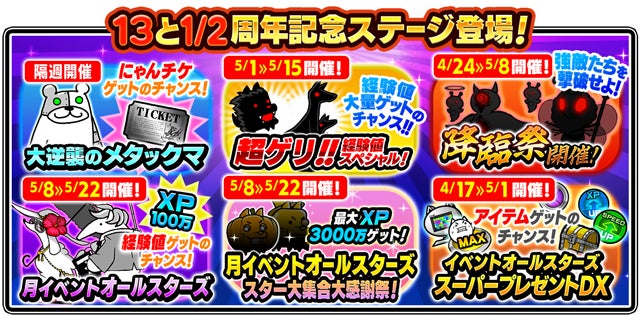 『にゃんこ大戦争』13と1/2周年記念イベント第1弾開催のお知らせ