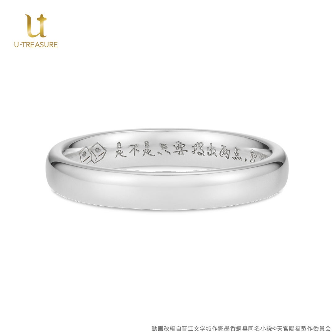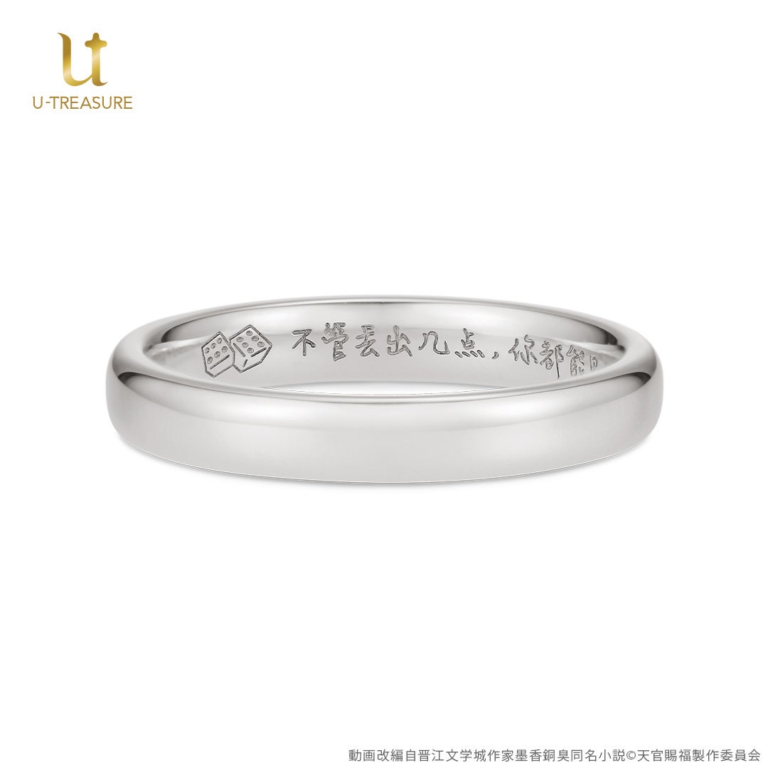 アニメ「天官賜福 貮」のキーアイテムである賽子(サイコロ)のモチーフと、謝憐と花城ふたりのやりとりを内側に刻んだリングです。