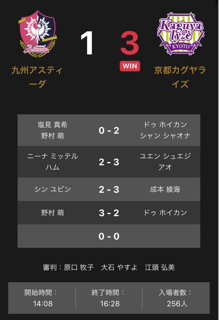 九州アスティーダ vs 京都カグヤライズの試合結果は