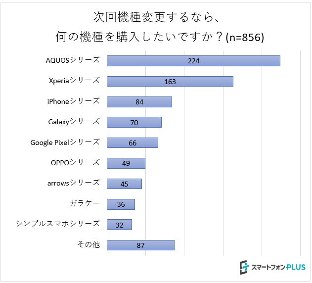 次いで「Xperiaシリーズ」、「iPhoneシリーズ」、「Galaxyシリーズ」、「Google Pixelシリーズ」の順になっています。