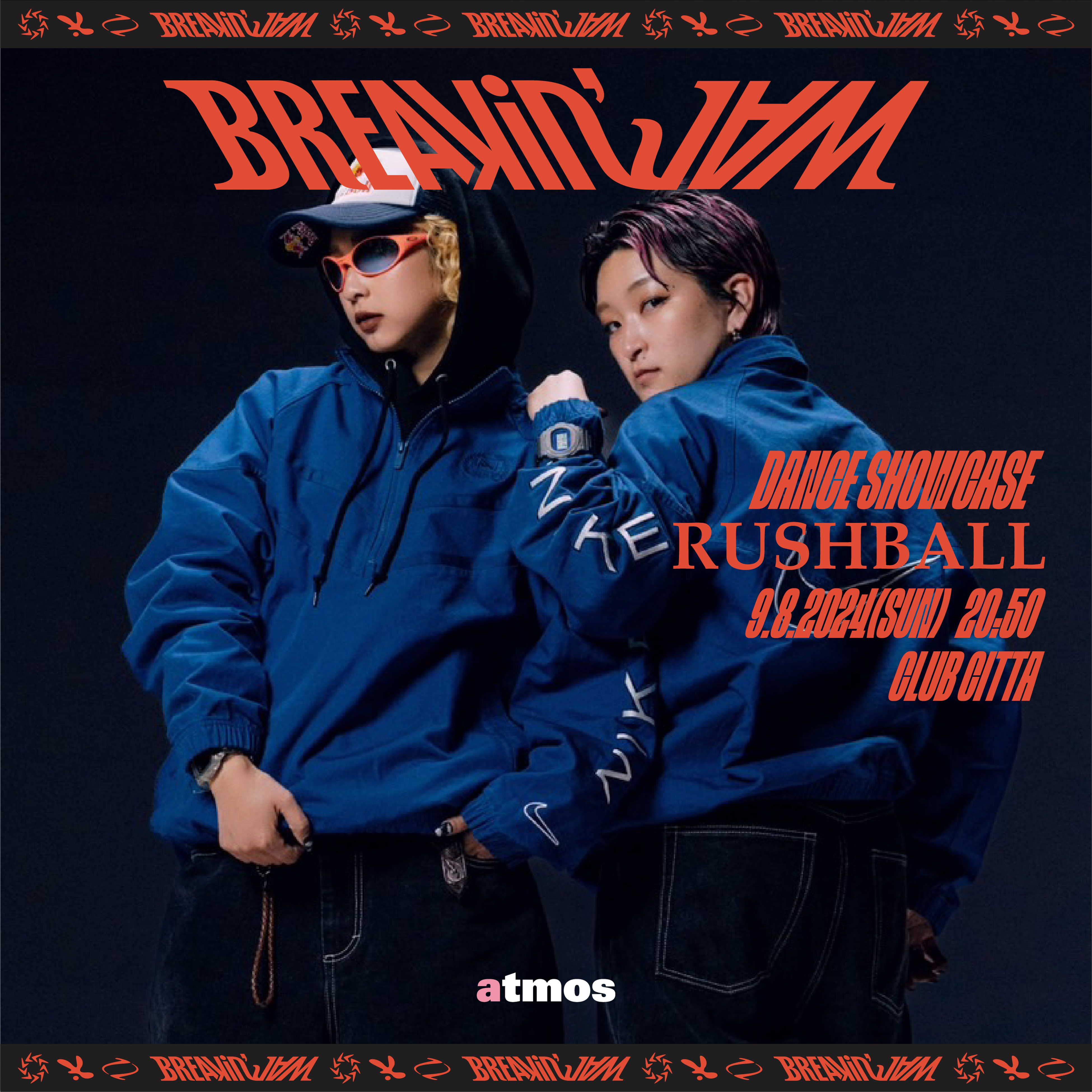新競技として正式に2024年にパリで開催された夏の祭典で採用されたブレイキン競技に合わせて、NIKE初のブレイキン用シューズ ”NIKE JAM(ナイキ ジャム)“が7月16日(火)より発売され、atmos pink初主催のブレイキン バトル「BREAKIN’ JAM」を九州予選と関西予選にて開催いたしました。関東予選をCLUB CITTAにて9月8日(日)に開催し、同日同会場で、各地区で優勝したブレイカーで決勝戦を行い、男女1名ずつの優勝者を決定します。