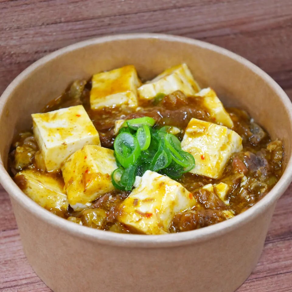 とろとろ煮込んだごろごろ牛すじがたっぷり!ピリ辛麻婆のコクと旨味が絶妙に絡み合う、食べ応え抜群の麻婆丼です。