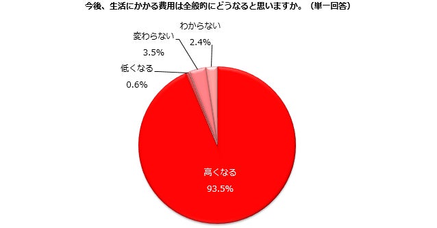 3.今後、生活にかかる費用は全般的に「高くなる」93.5%