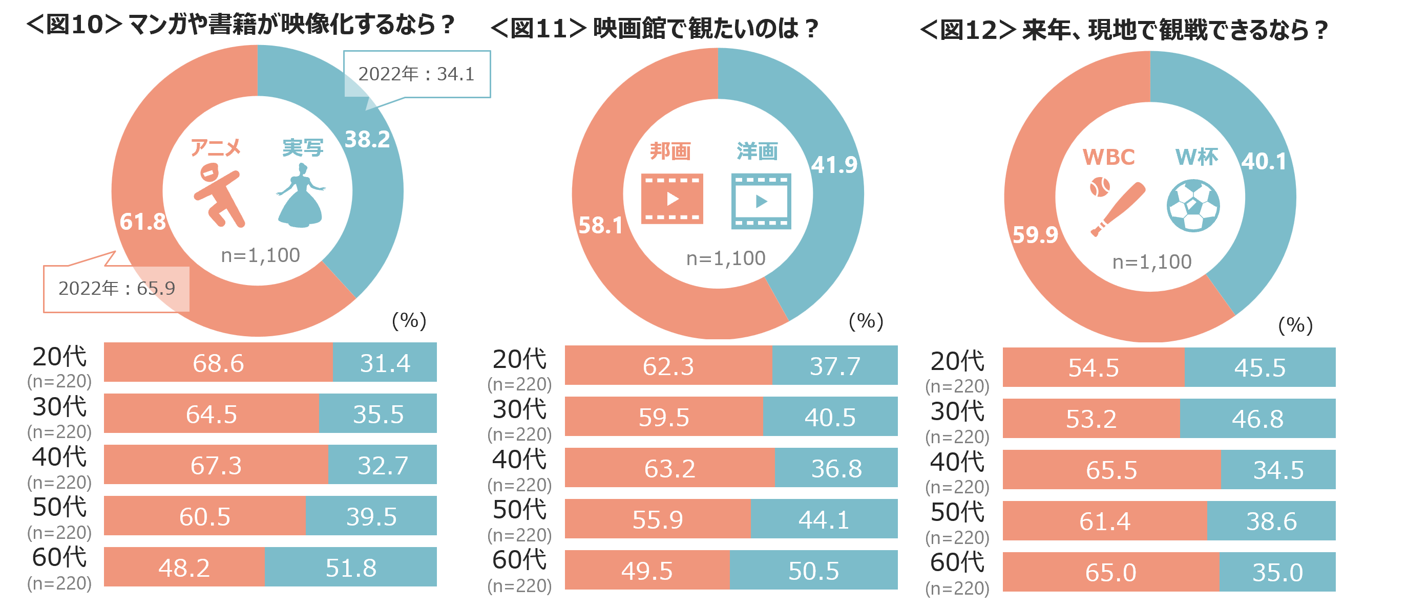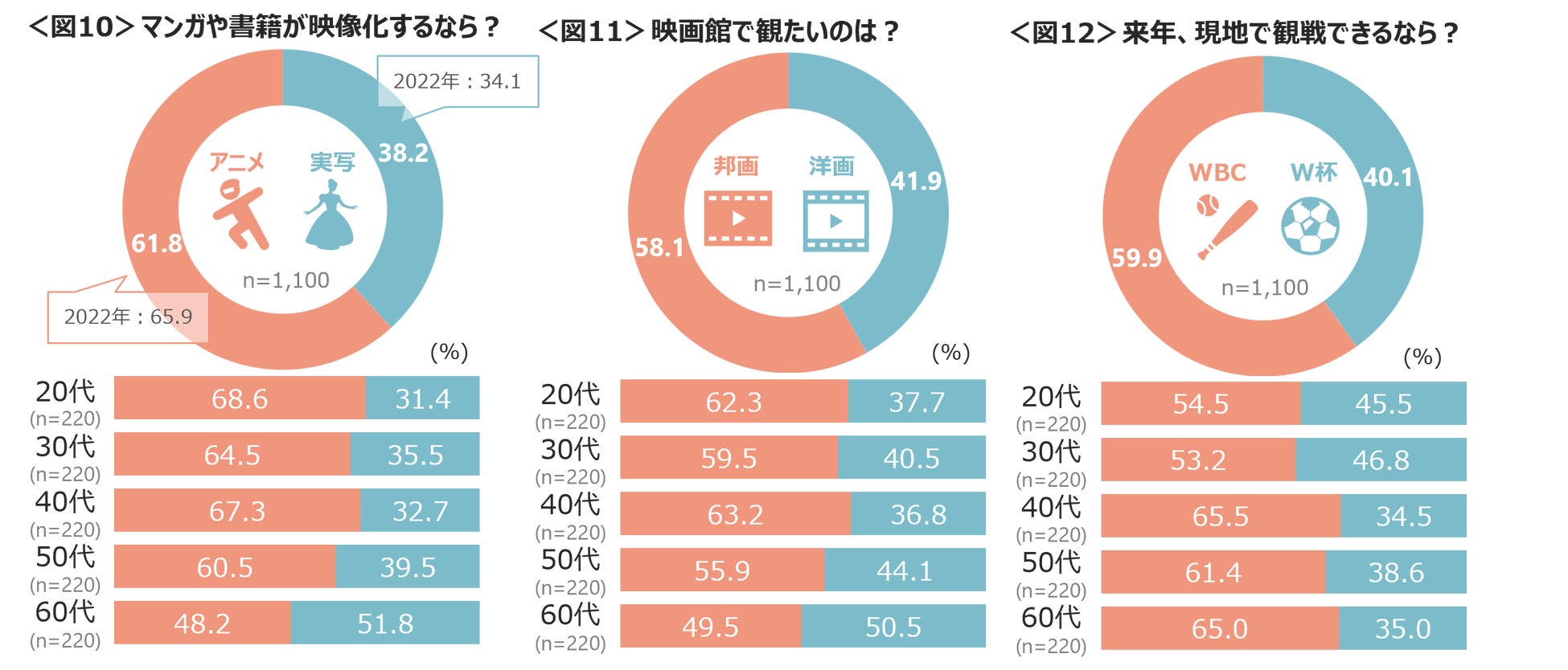 ・マンガや書籍の映画化は「アニメ」の方が好きな人が61.8%。60代のみ「実写」が半数以上。