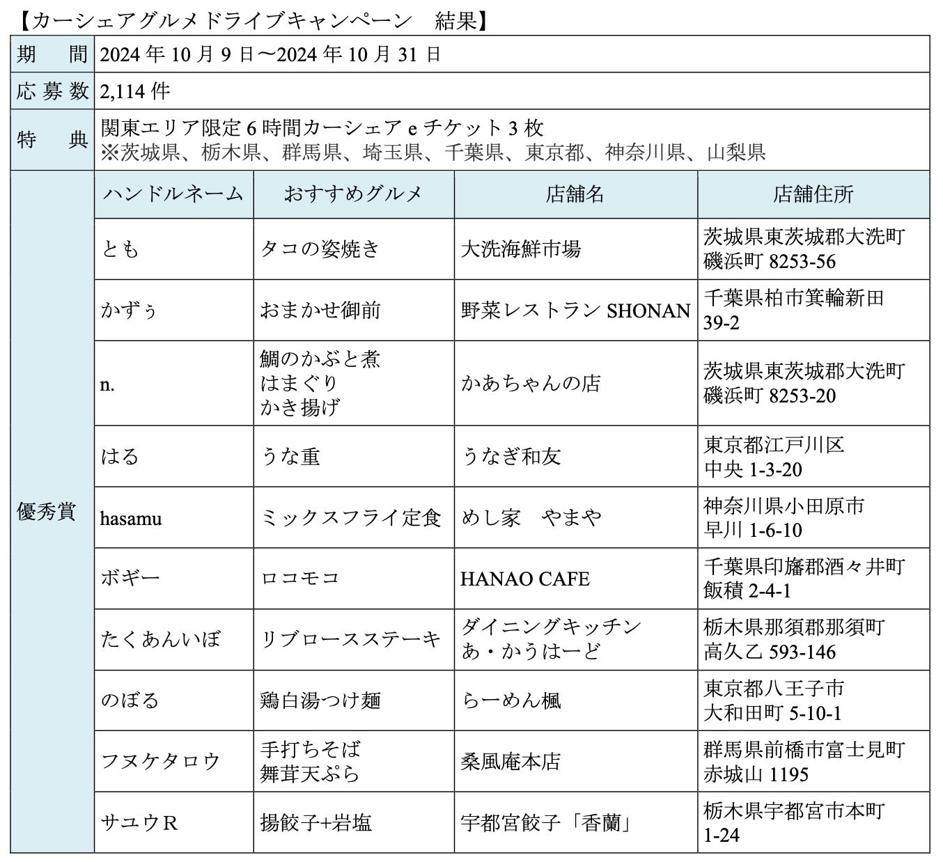 結果発表ページ:https://share.timescar.jp/campaign/gourmet_1st/