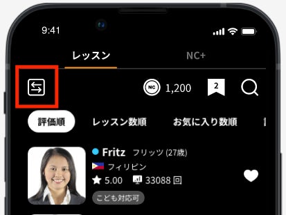 アプリをキッズ画面に切り替えてからレッスンをご受講ください。