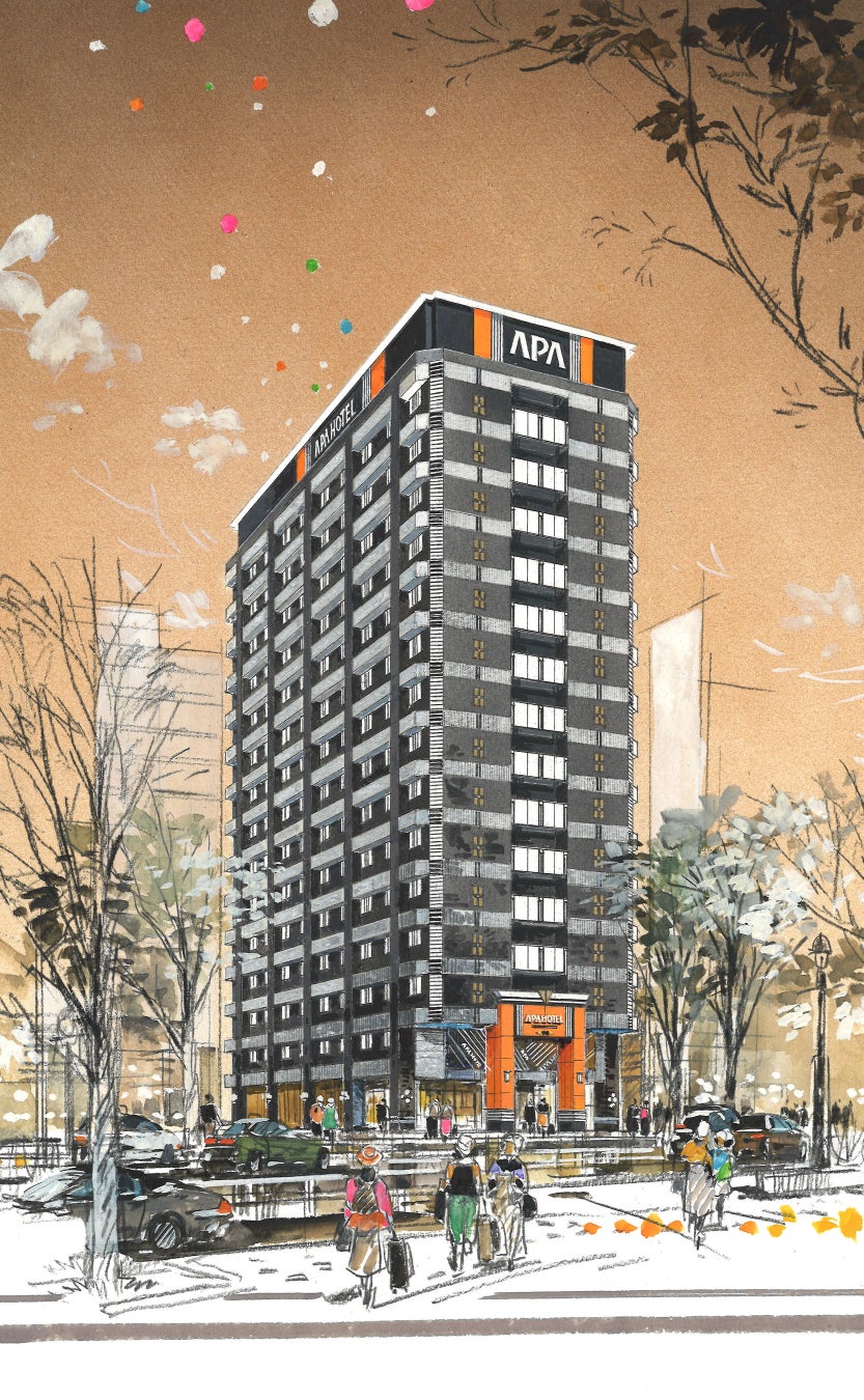 渋谷区初進出となるアパホテル〈渋谷道玄坂上〉(全173室)は、2012年の開業当初から高い稼働率を維持しており、現在は隣地に増築棟(全74室)を建築中である。来年4月には既存棟と増築棟を合わせて全247室のホテルとなるが、今回さらなる客室数増加を図るべく、道玄坂の通り沿いにアパホテル〈渋谷駅前〉(全231室)の新築計画を決定した。本ホテルが開業を迎えた際には、現在運営中のアパホテル&リゾート〈西新宿五丁目駅前タワー〉(全710室)も加えて、渋谷区内においては4棟・全1,188室の運営体制となる。